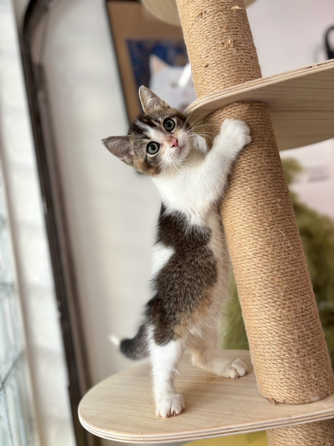 這隻曼赤肯賓士虎斑弟弟擁有短腿與獨特虎斑花紋,活潑靈巧,個性親人討喜。牠的造型宛如小萌寵,帶來滿滿療癒感。現於喔嗨喵(宜蘭市)可預約,等你把牠接回家!